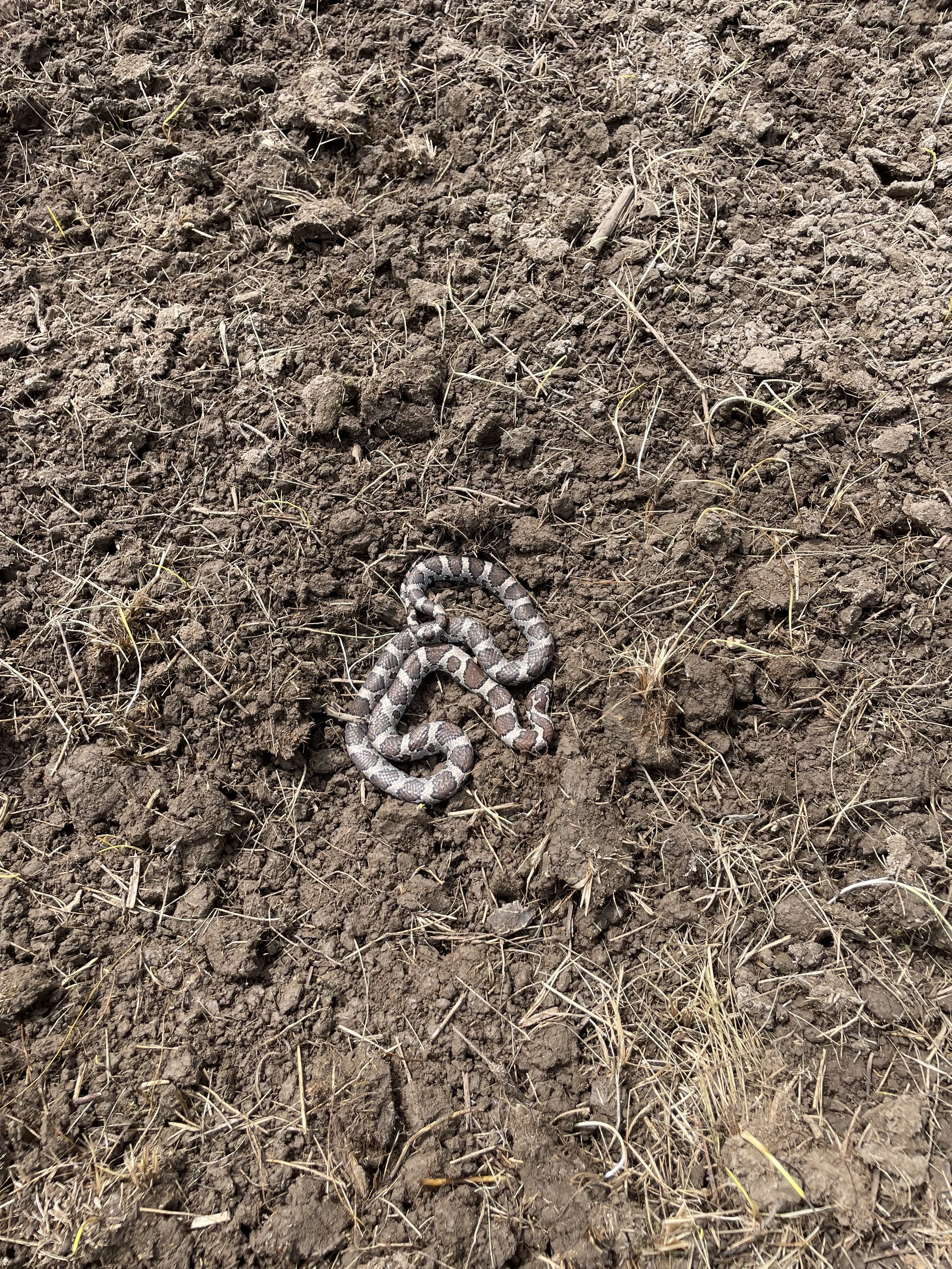 A snake we uncovered when pulling the tarp off of Block 2. They love the warm plastic!