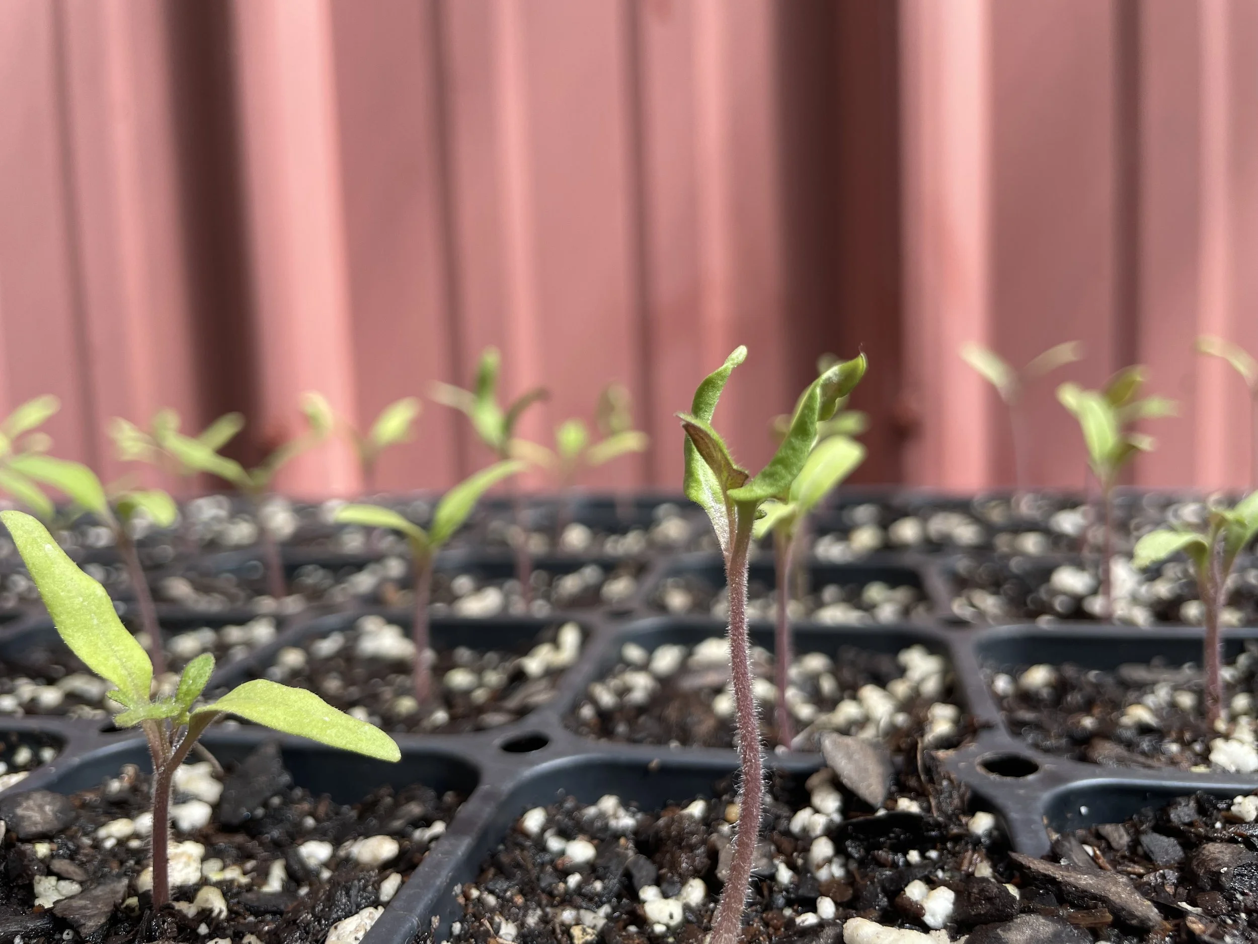 Our little tomato seedlings. They had a bit of a late start but they are growing alright.