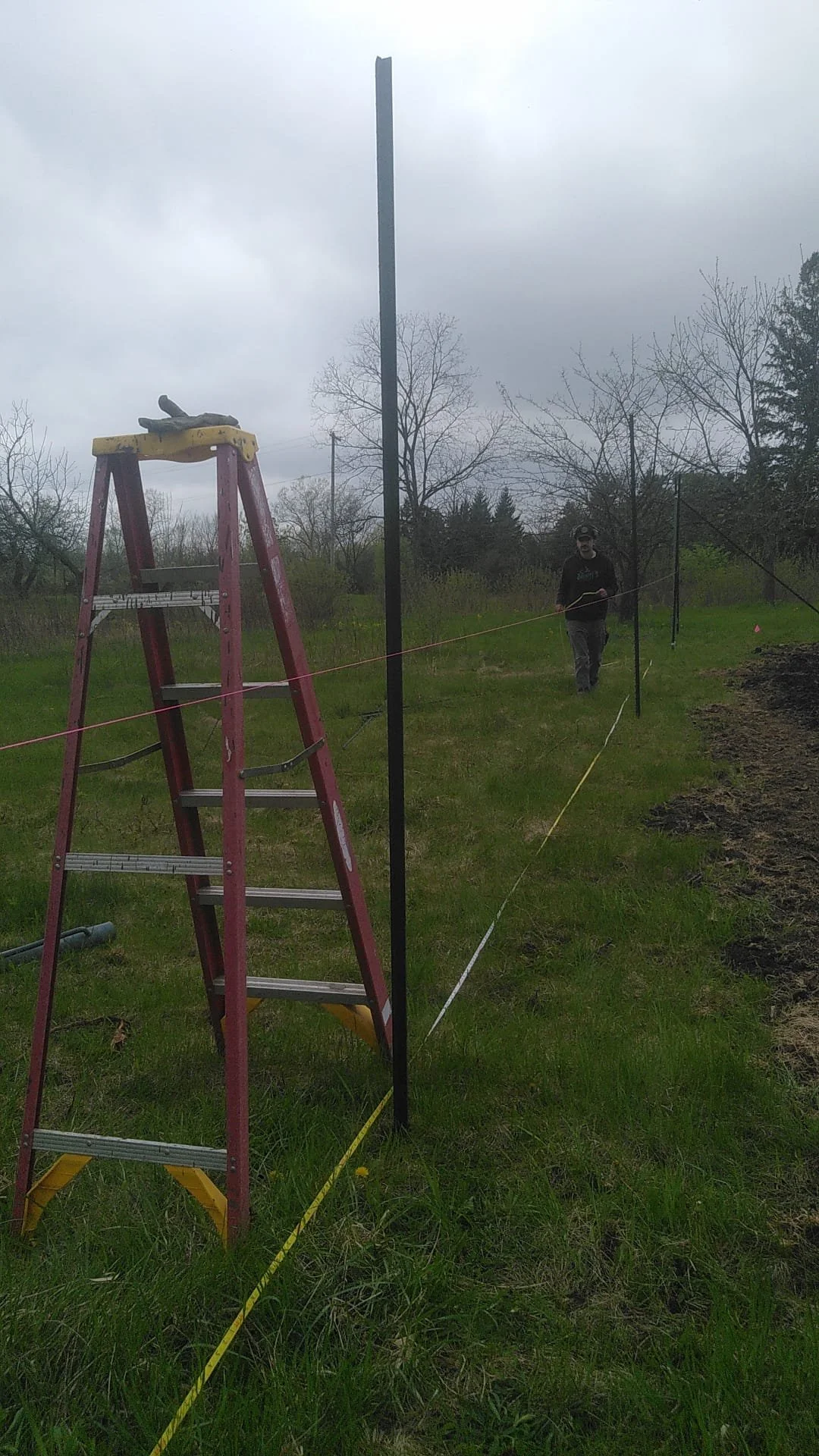 Firstly we installed our 8 foot tall Deer Buster fence to defend against unwanted critters. Well, most of a fence. Getting this fence up was a big win for us and was a nice project. Similar to how there are many ways to skin a cat there is evidently more than one way to build a fence. Magda and I discussed and debated most of them.