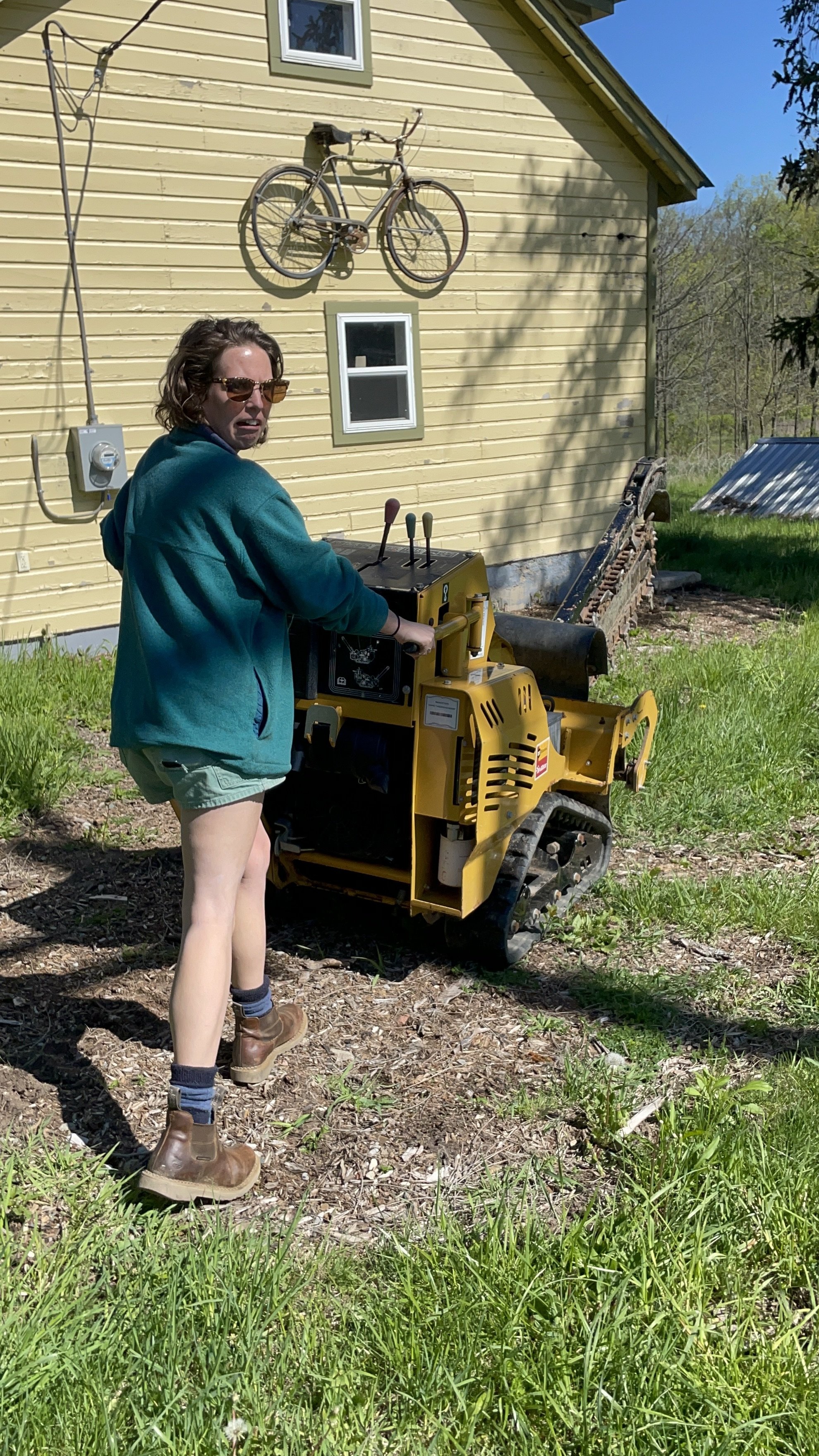Magda pushing the massive trencher (she's having a great time).