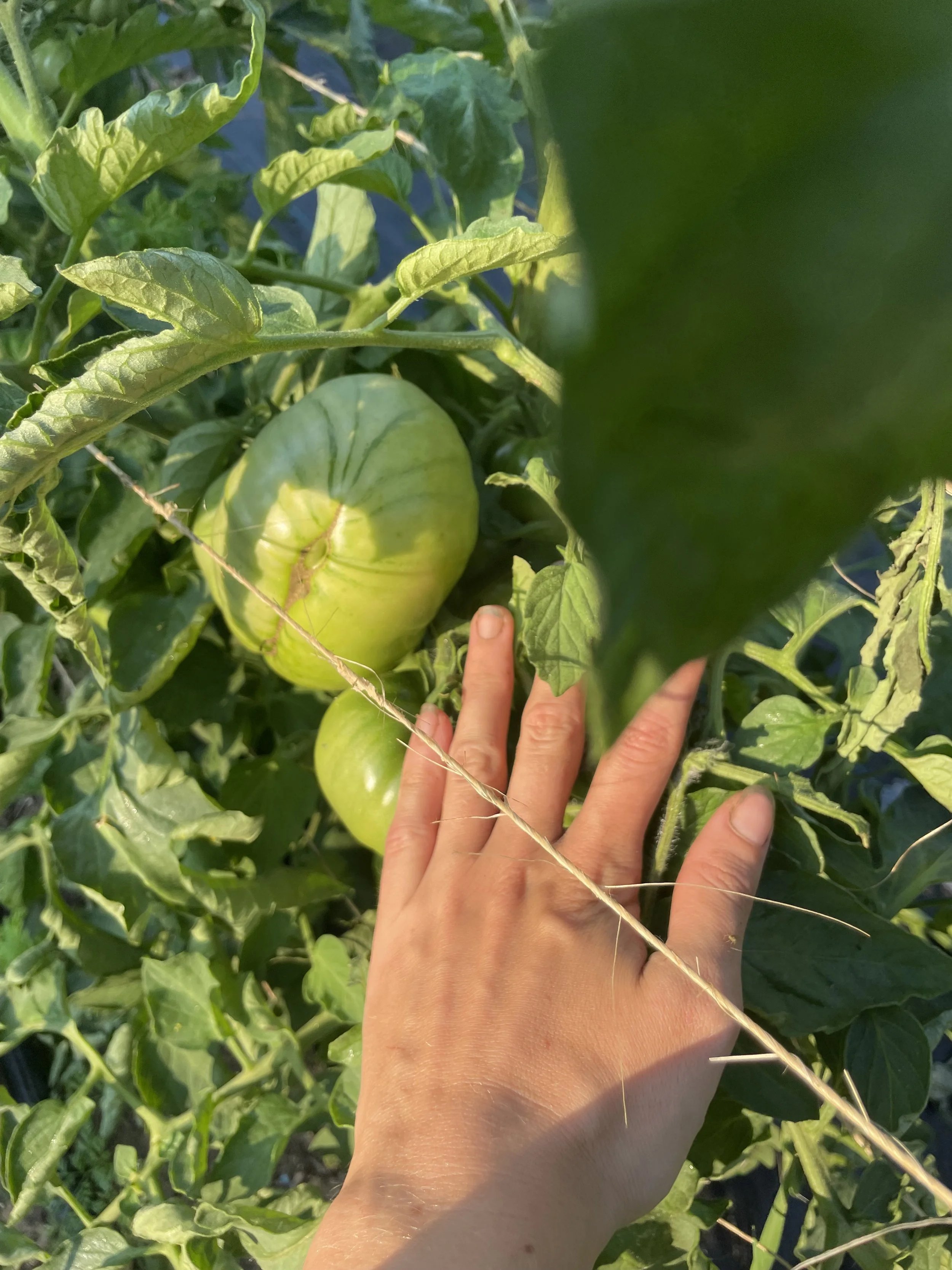Since tomatoes are coming I think it’s appropriate to talk about the ones we are growing. We have 300 feet of tomato rows planted in the field. First row is cherry/salad tomatoes, the next two are both heirloom slicers. The tomatoes are trellised using the Florida weave with 6-foot-tall T-post staked between every 4 plants. In the future we want to change this to every 3 plants (the slicers are just too heavy). As for what kind of tomatoes they are, we are growing a few varieties that were bred by our late mentor Casey Piscura, one called Mountain Flair and the other Cosmic Purple Rain.